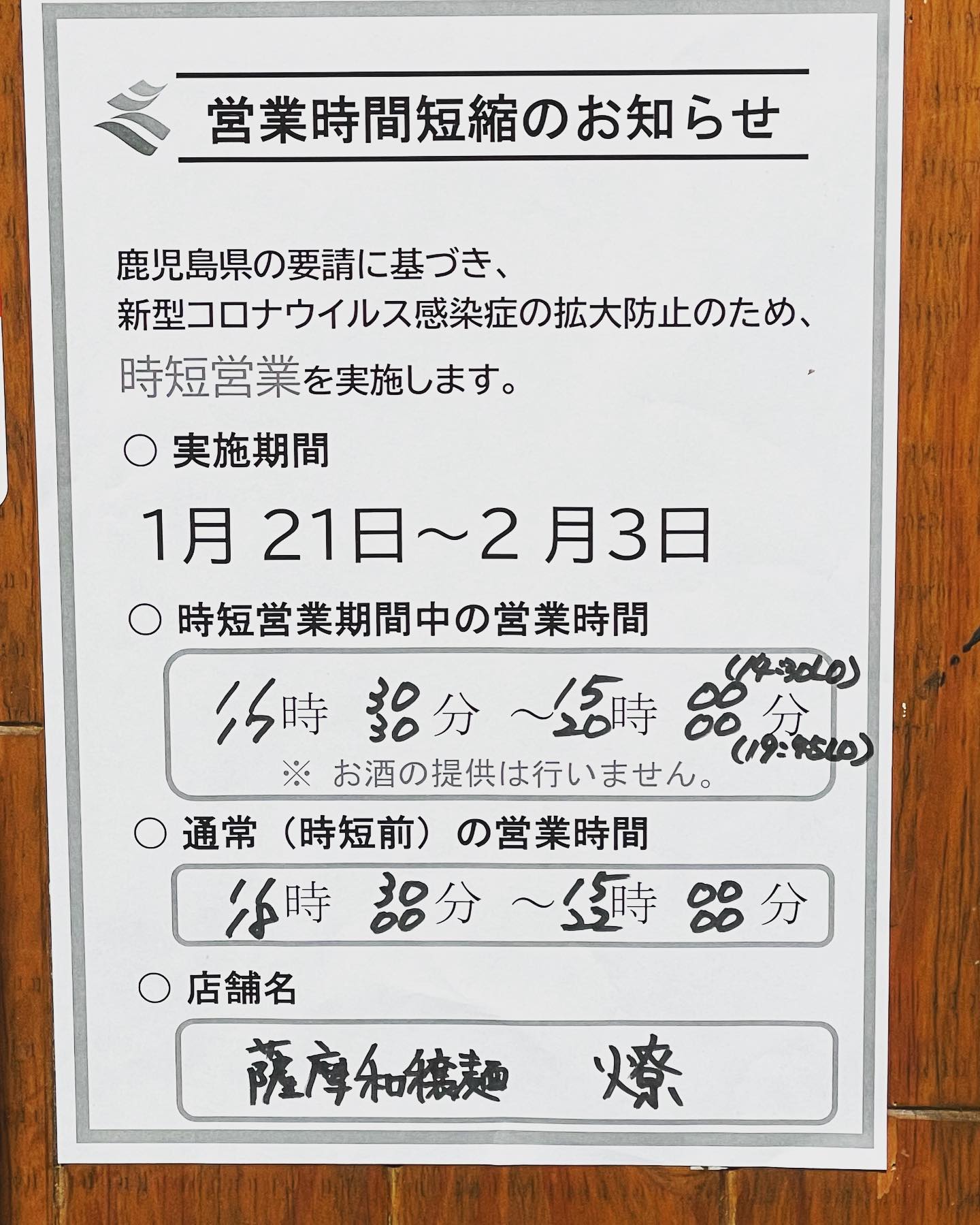 ・いつも沢山のご来店誠に有難うございます県の時短要請に基づき、1/21〜2/3まで夜の営業時間が変更になります。お昼はいつも通り11:30〜15:00(14:30L.O)夜は、17:30〜20:00(19:45L.O)と… 続きを読む ・いつも沢山のご来店誠に有難うございます県の時短要請に基づき、1/21〜2/3まで夜の営業時間が変更になります。お昼はいつも通り11:30〜15:00(14:30L.O)夜は、17:30〜20:00(19:45L.O)となっております。ご理解の程宜しくお願い致します♀️♀️♀️